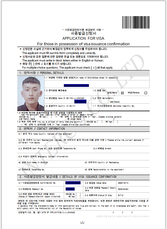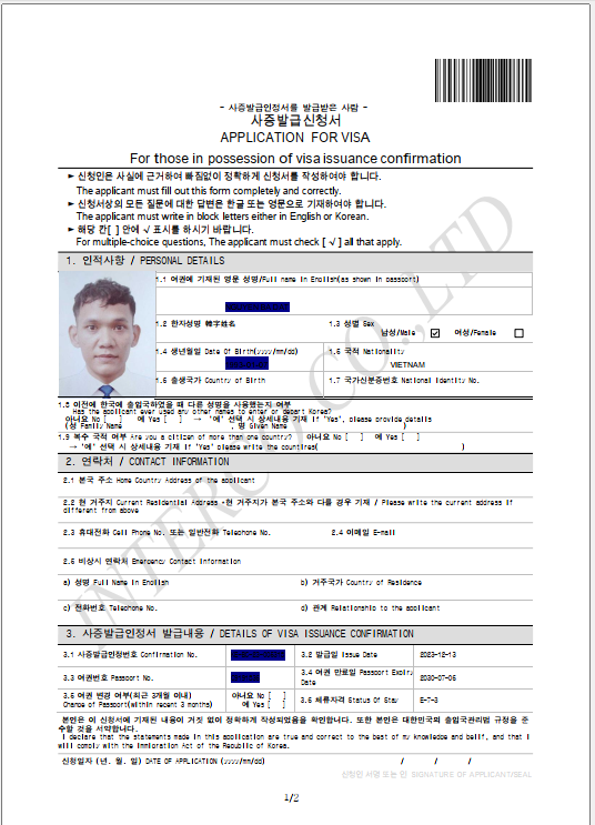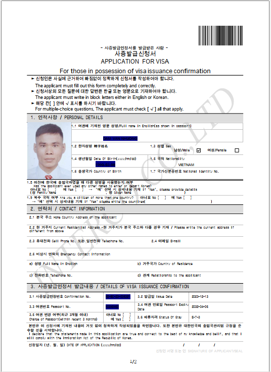 Hồ sơ, thủ tục xin visa Hàn Quốc E7-3