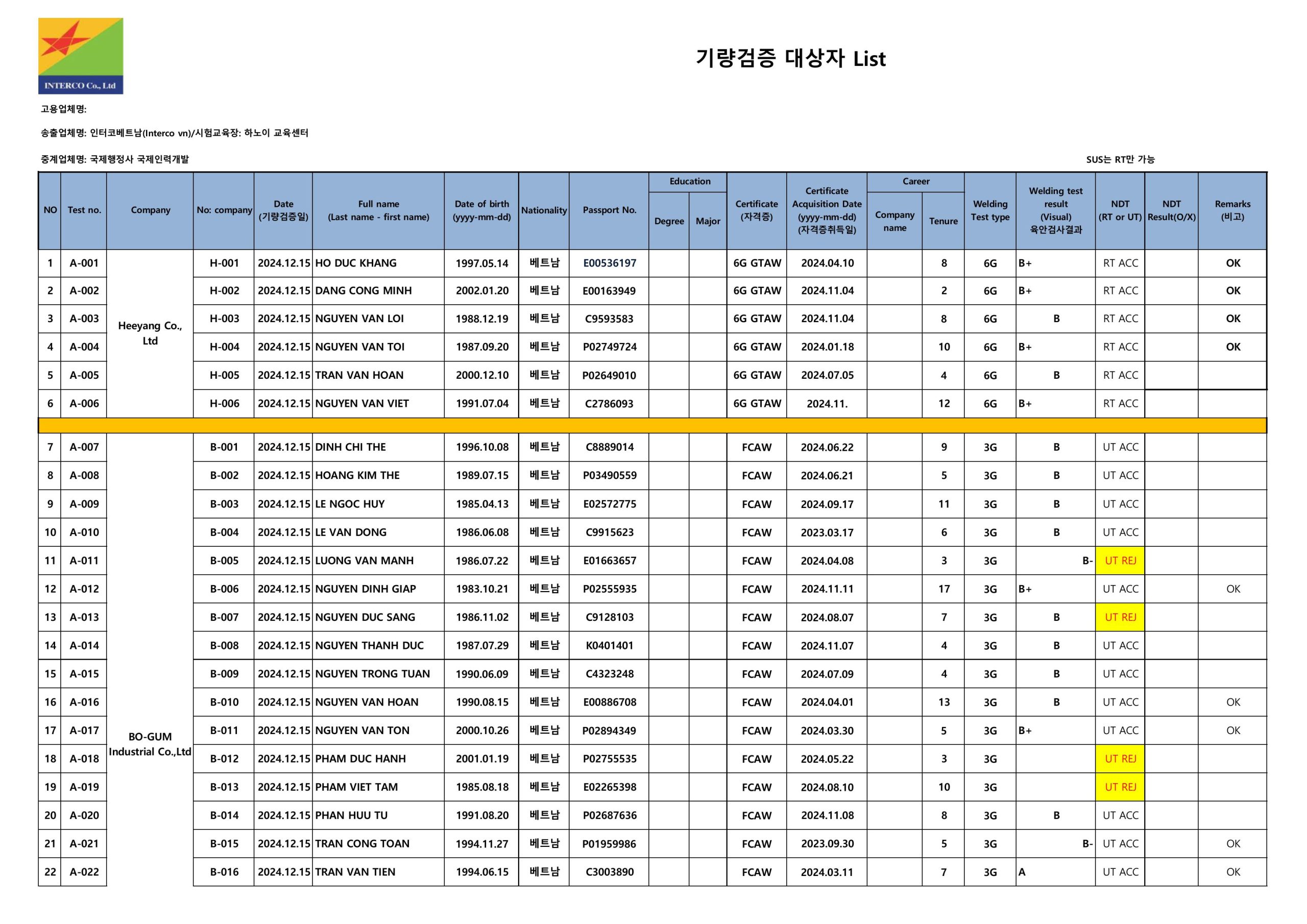 Thực hiện theo PTL từ Cục QLLĐ NN, Công ty đã tiến hành tổ chức tuyển chọn và tổ chức thi tuyển mời Hiệp hội đóng tàu KOSHIPA về kiểm tra tay nghề lao động.
